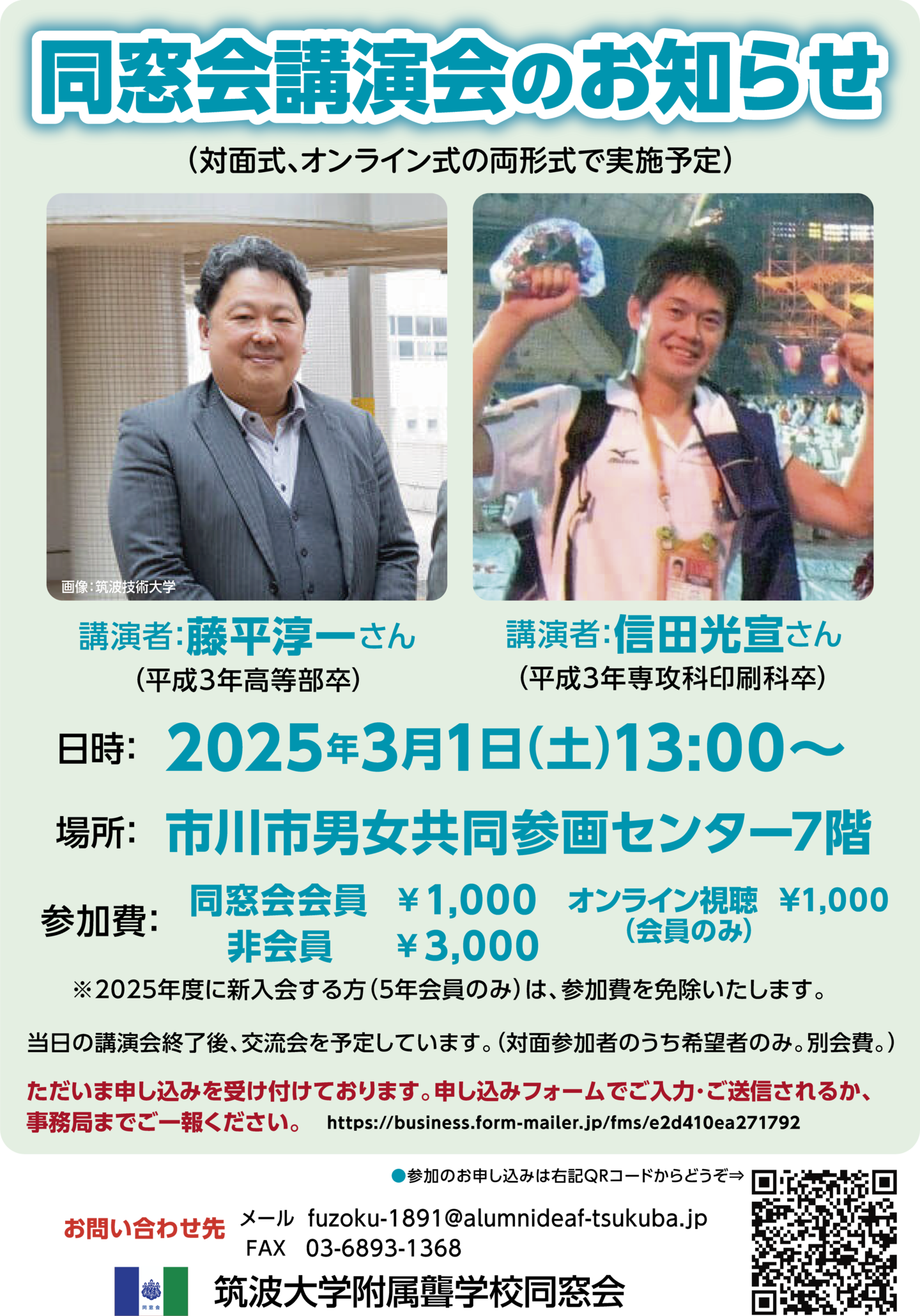 いつもお世話になっております。筑波大学附属聾学校同窓会事務局です。講演会のお申し込みを検討していただき、ありがとうございます。